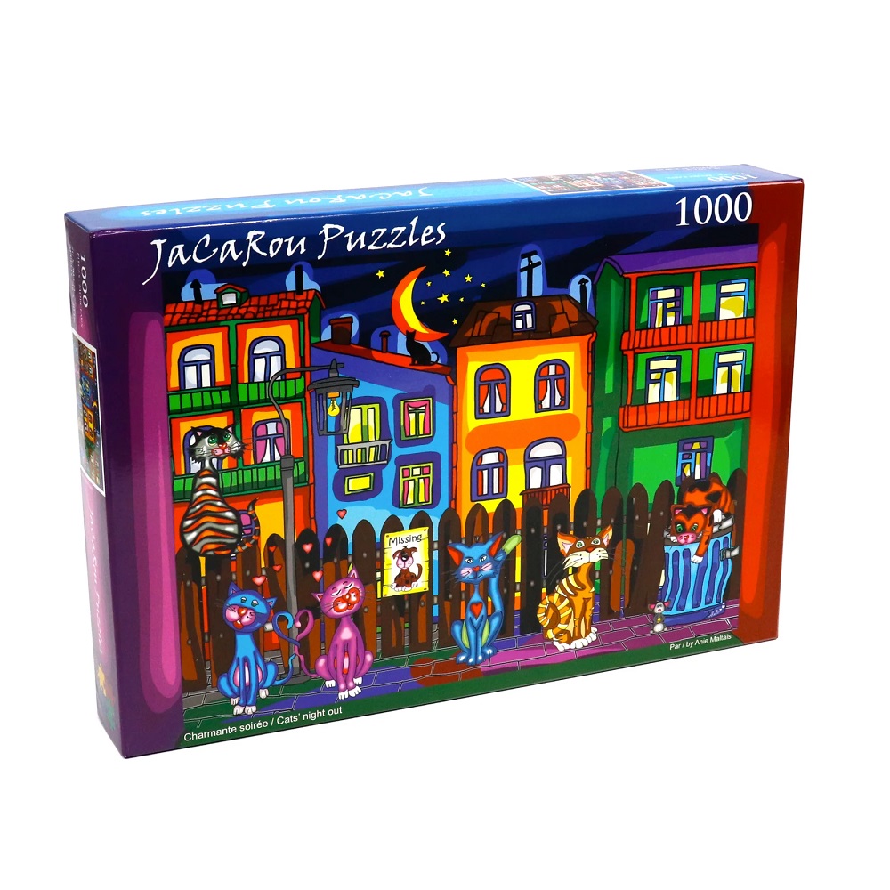Jacarou jigsaw puzzles are excellent quality and have a gloss finish.  The pieces fit together perfectly and the colourful images are vibrant and clear.  Jacarou puzzles are manufactured in Canada.