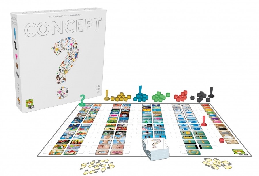 In Concept, players team up to place tokens on a board covered in icons, depicting everything from ancient samurai and snails to Leonardo DiCaprio. Points go to the player who can guess the correctly by looking at the various symbols, but in this wild party game, the points are less important than just having a great time!