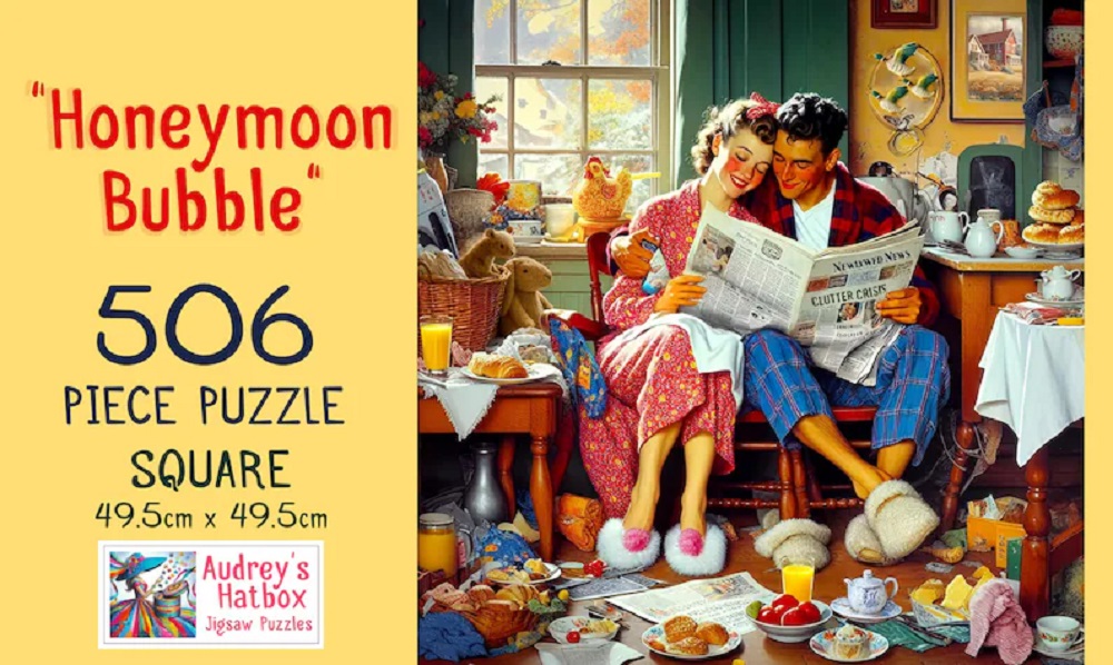 This image is designed by Margo Nugent as part of her Audrey's Hatbox range of jigsaw puzzles.  If you like your puzzles bursting with colour, delicately detailed with prints and patterns, gorgeously whimsical and exquisitely pretty, along with some old-school elegance and delightfully vintage scenes, you will love this range of puzzles.