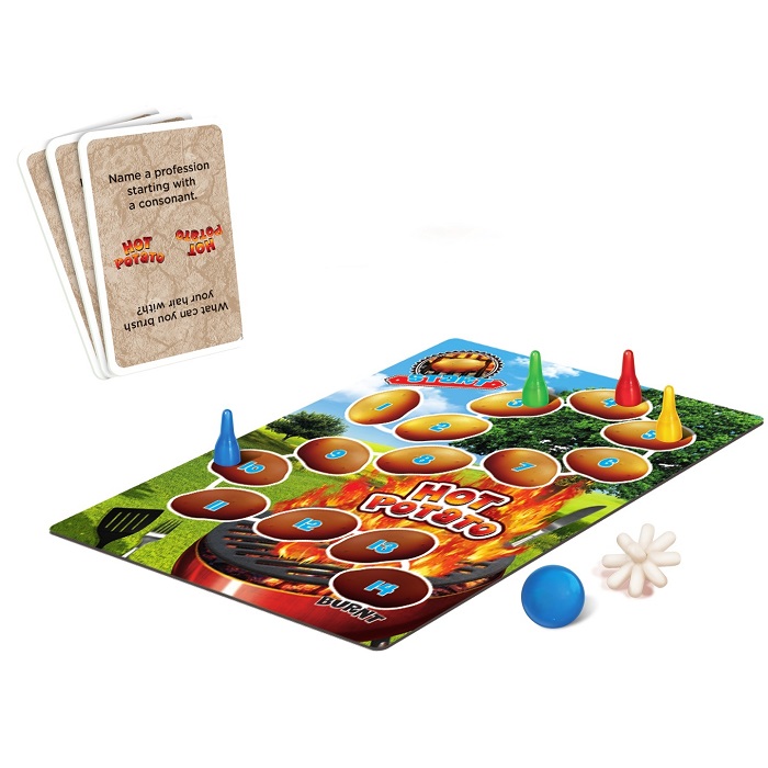 Can you think fast under pressure? This fancy game gives you just a few moments to come up with a proper answer and throw the Hot Potato into your opponent’s hands. Get rid of the potato before the time is up so you don’t get burned! Answer quickly, aim well, catch firmly and try not to drop down to the bottom of the board. Tastes great at any age!