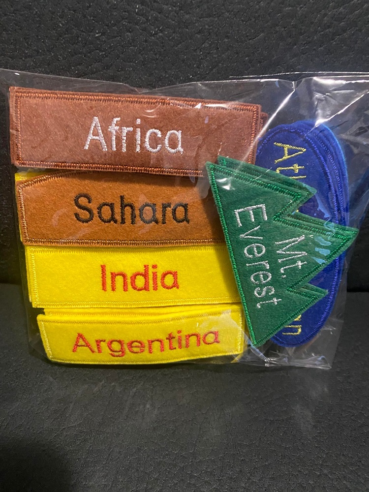 33 word pieces (7 continents, 17 countries, 6 oceans and seas, 2 mountains, 1 desert)