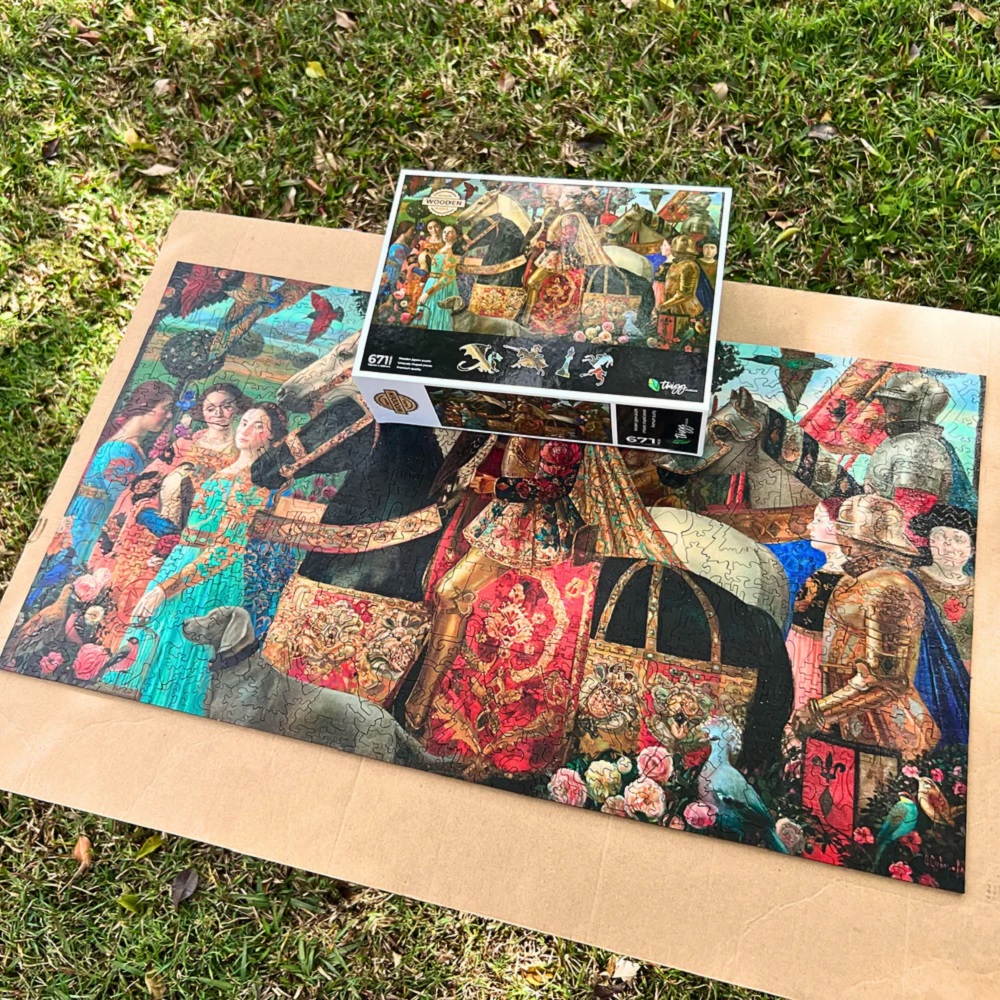 Get ready for this wooden puzzle challenge unlike any other as you tackle our largest puzzle ever created at Twigg Puzzles.  This 671-piece puzzle is an incredible detailed original artwork from an international artist.