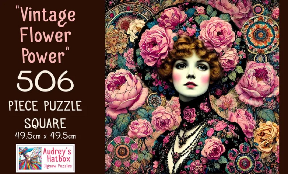 This image is designed by Margo Nugent as part of her Audrey's Hatbox range of jigsaw puzzles.  If you like your puzzles bursting with colour, delicately detailed with prints and patterns, gorgeously whimsical and exquisitely pretty, along with some old-school elegance and delightfully vintage scenes, you will love this range of puzzles.